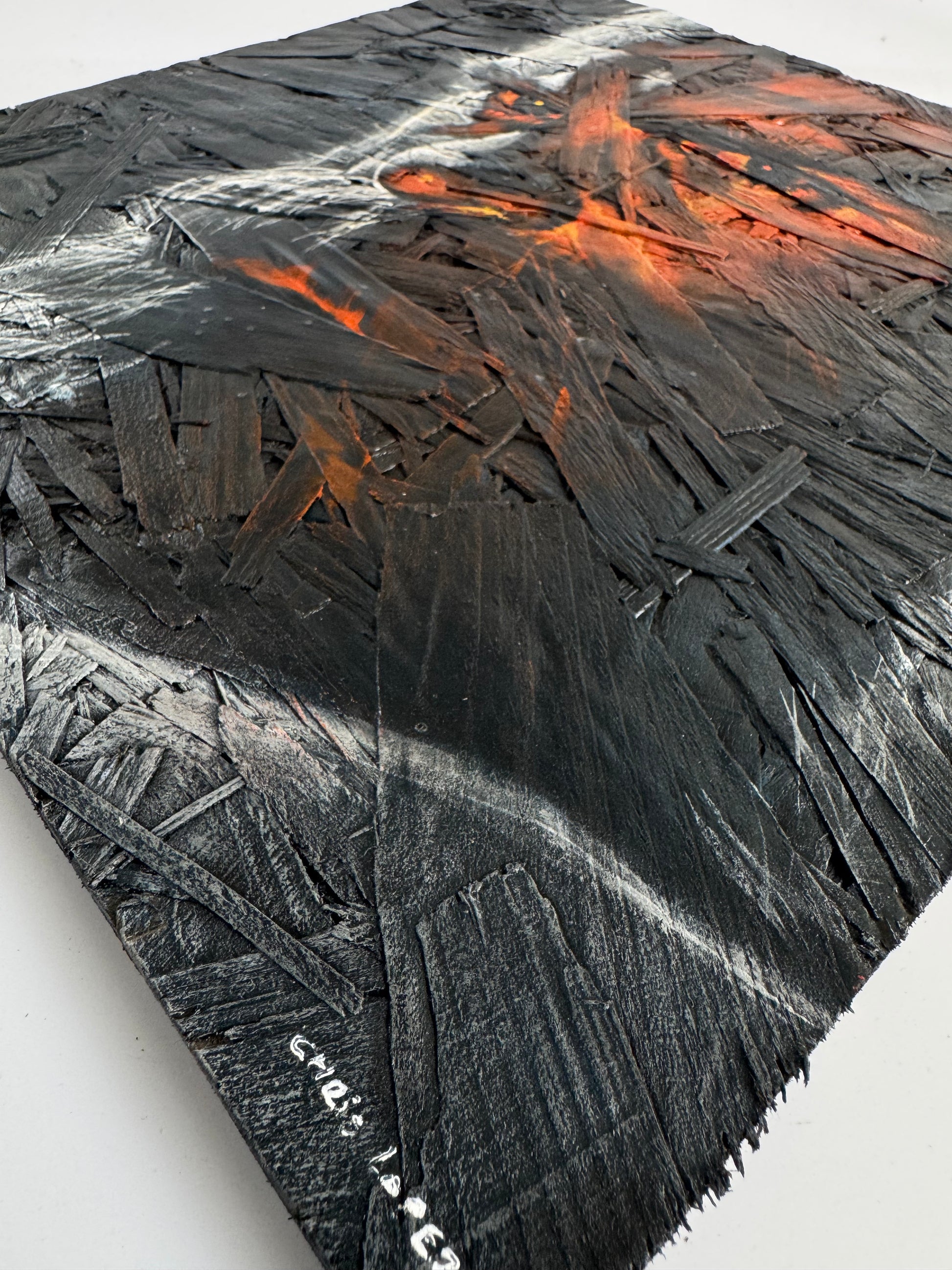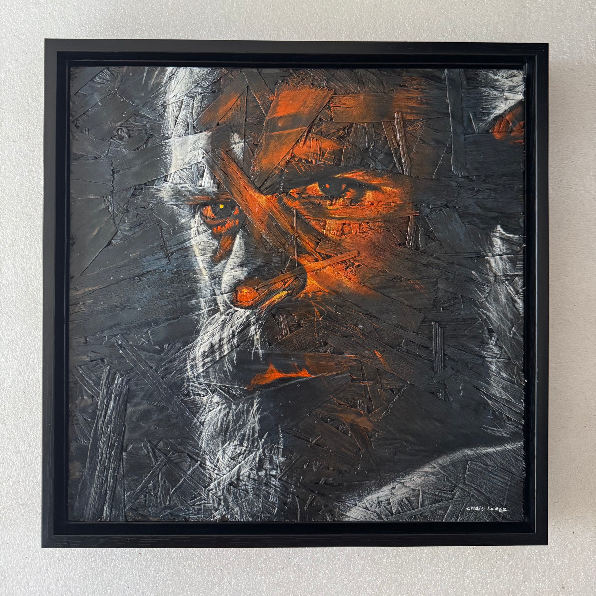 "Obscure" is part of a refined series exploring raw, expressive portraits without photographic references. Crafted on dark-tinted OSB panels, each piece emphasizes rugged textures and dramatic stares, enhancing contrast and depth through the panel’s inherent darkness. This technique highlights the emotional intensity and adds a striking interplay of light and shadow, in these evocative, tactile works.