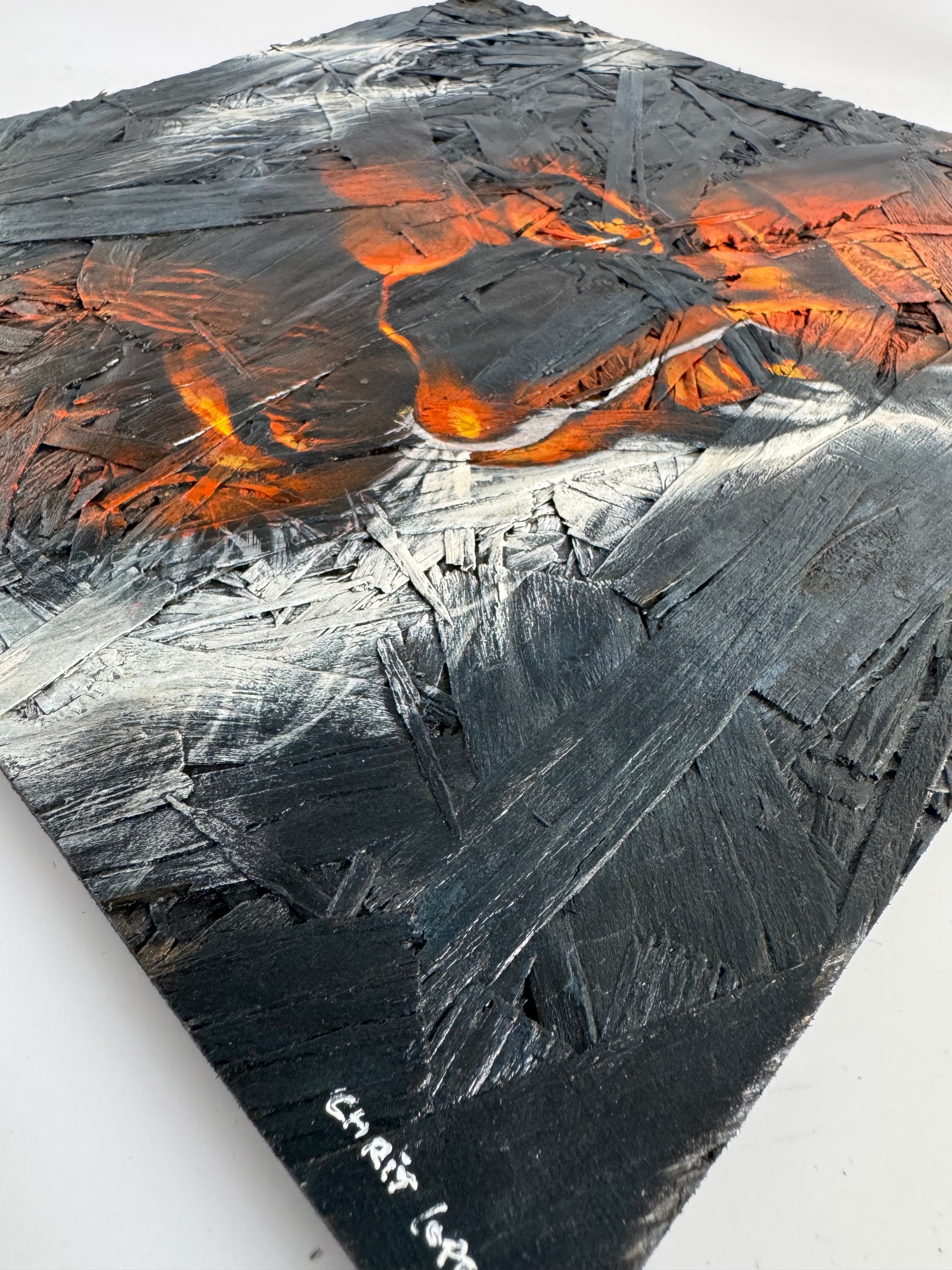 "Obscure 4" is an original acrylic painting on a 12x12" OSB panel. Varnished to enhance durability and color vibrancy, the artwork is elegantly framed, making it ready to display. The use of OSB provides a unique textured surface that adds depth and character.